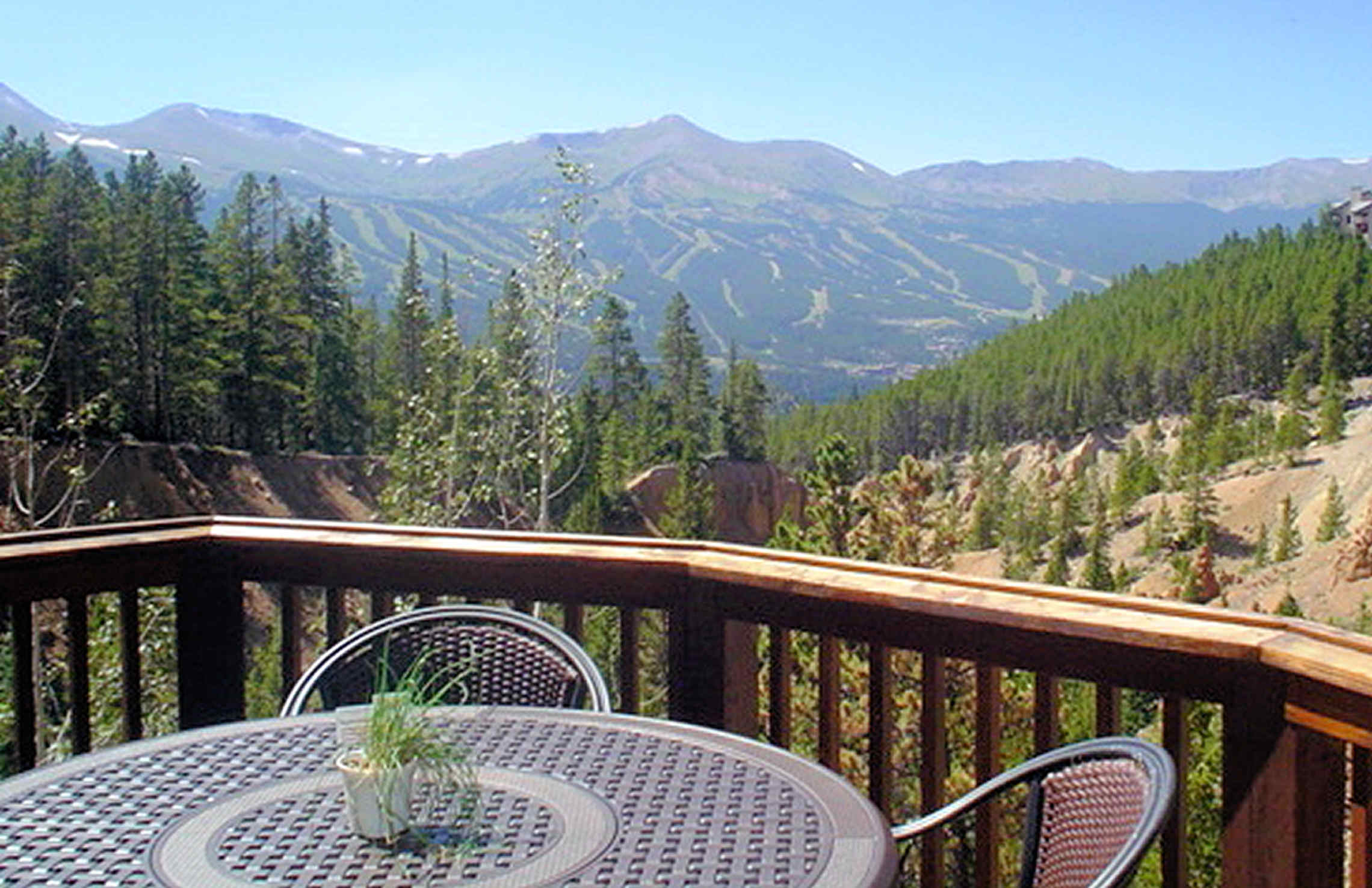 Relax in the private hot tub outside or in front of the fire in the family room. Enjoy spectacular views of Breckenridge, the ski area and nature in this 3600 square foot duplex. There are 3 private bedroom suites, one additional bedroom that shares the bath with the sofa bed located in the game room. A fully equipped deluxe kitchen and a large gas grill for cooking or enjoy one of the many restaurants in downtown Breckenridge. The bus stop is less than a block away. Enjoy a movie in the media room or play a game of foosball in the game room. This wonderful home is a bus ride away from the slopes, a short walk to trails and a great place to relax.